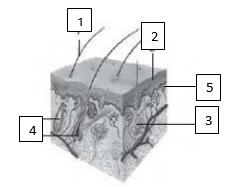 10. Perhatikan gambar berikut!Bagian kulit yang berfungsi menghasilkan keringat ditunjukkan oleh nomor ….