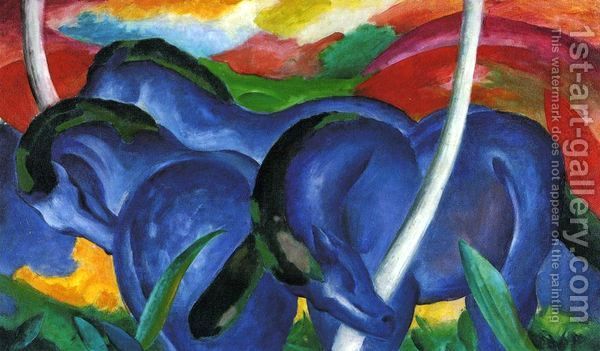 The correct answer refers to the artwork 'Large Blue Horses' by Marc from the movement The Blue Rider. The incorrect answers provided are famous artworks by different artists and movements.