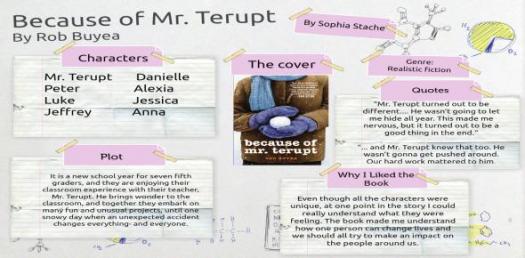Because of Mr. Terupt is a novel written primarily to teach Children lessons that are important for them in life. It is a story told through seven students, talking about their lives as students. The novel focuses on the lives of each of the children, teaching them all taking responsibility...see morefor whatever is going on in their lives. see less