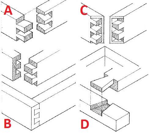 In the wood dovetail joints shown, what is Item D?